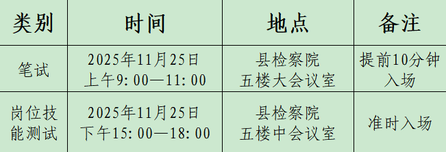 一、审核通过符合报考条件人员持居民身份证于2025年11月25日(星期二)8时30分前到达镇沅县人民检察院一楼大厅领取准考证,完成安检后在一楼大厅等待工作人员指引进入考场(安检不合格、迟到人员取消考试资格);